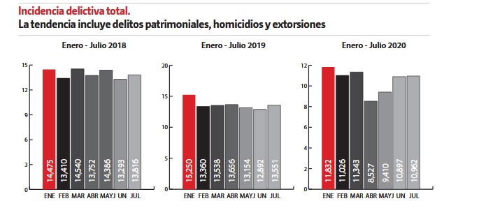 — “Por eso es que nosotros, como gobierno del estado, le damos seguimiento a ocho delitos en particular, y aquí sí se la voy a cambiar”, revira. “Esos ocho delitos son los que pegan directamente al patrimonio del ciudadano. Y en esos ocho delitos no puede el ciudadano ser omiso en su denuncia”, añade.El coordinador del Gabinete de Seguridad estatal explica que “si te roban el vehículo, sí o sí, debes de presentar tu denuncia para hacer el trámite de la baja de la placa. Ya no digo el aseguramiento, la aseguradora. Asimismo, en el robo a persona o a transeúnte se debe de hacer el trámite de la denuncia; se debe de presentar la denuncia para hacer el trámite de la baja de las distintas identificaciones, llámese credencial de elector, licencia de manejo, o en el caso que está tan de moda, de los celulares, pues para que tú hagas válido el coaseguro de tu celular, debes de ir a denunciar. También el robo a negocio; gran parte de los negocios cuentan con una prima de aseguramiento, y el primer paso para hacerla válida es la denuncia. Entonces yo aquí sí diría que estos delitos de seguimiento especial se denuncian forzosamente para iniciar trámites. Entonces no puedo decir que se denuncie menos”.
