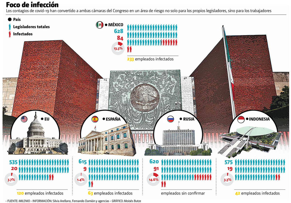En lo que va de la emergencia sanitaria provocada por el covid-19, 84 legisladores se han contagiado —de ellos el senador Joel Molina y el diputado Miguel Acundo González fallecieron—, lo que convierte al Congreso mexicano sublíder mundial de infectados, solo detrás del ruso.