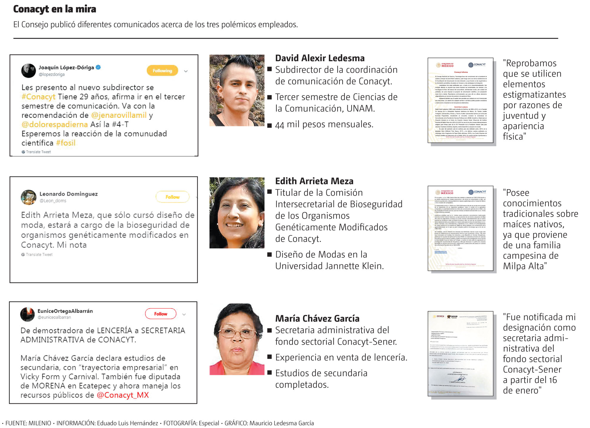 En este contexto confirmó la renuncia, por cuestiones personales, de David Alexir Ledesma, subdirector de Comunicación Social a quien se criticó por no tener experiencia en ciencias y ganaba 44 mil pesos al mes.