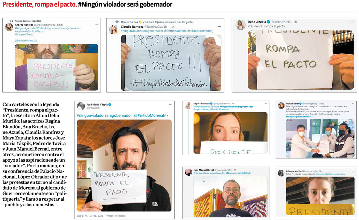 El respaldo del presidente Andrés Manuel López Obrador al aspirante a la gubernatura de Guerrero, Félix Salgado Macedonio, provocó el rechazo de colectivos feministas, políticas e internautas, en redes sociales.