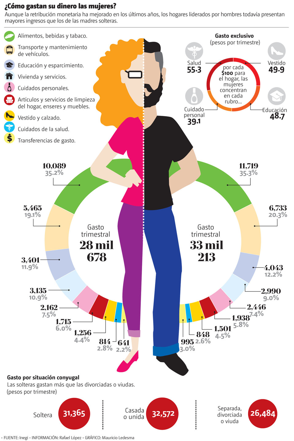 Las limitaciones salariales de las mujeres derivan en una brecha presupuestal de 4 mil 535 pesos entre los gastos en una casa comandada por ellas y una liderada por un varón, en la cual los gastos ascienden a 33 mil 213 pesos trimestrales.