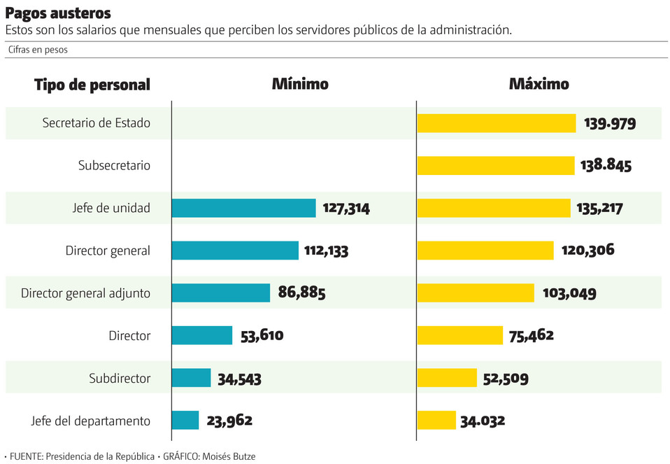 Las medidas no solo se limitaron a recortar la plantilla laboral, también se tocaron los salarios de los servidores públicos y en el caso de los directores adjuntos se registró una caída de 11.9 por ciento en las percepciones.