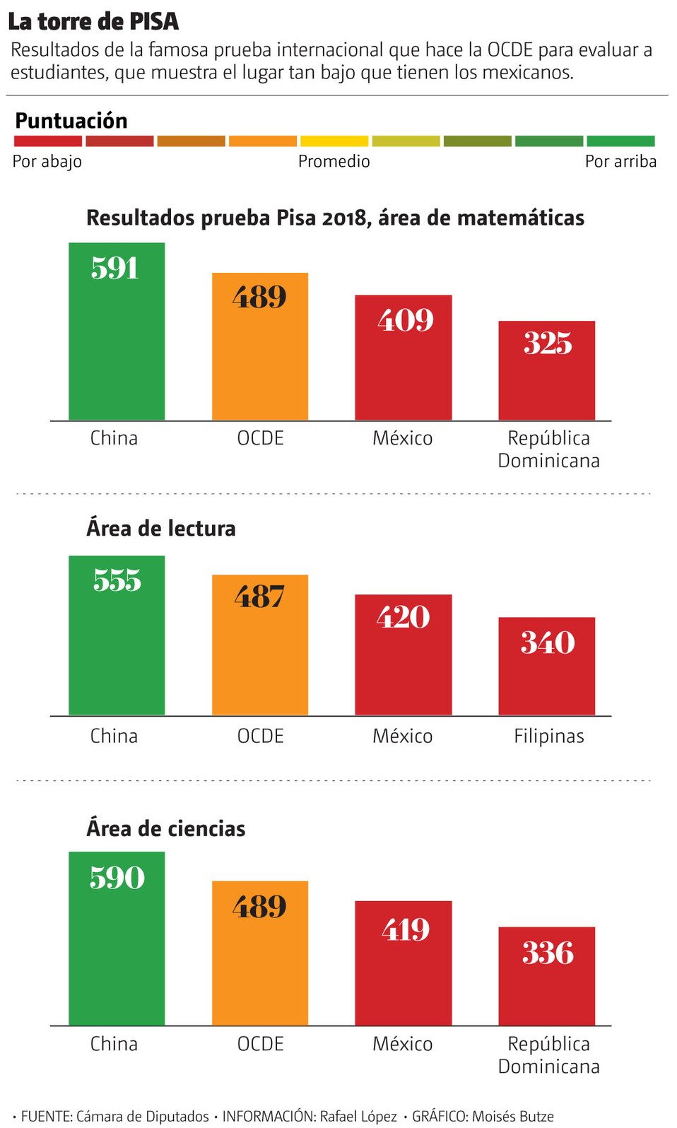 La falta de inversión en la materia propició un desempeño deficiente de alumnos mexicanos en la prueba PISA 2018 al obtener resultados por debajo de la media internacional. La puntuación en lectura fue de 420, en matemáticas 409 y en ciencias 419 puntos.
