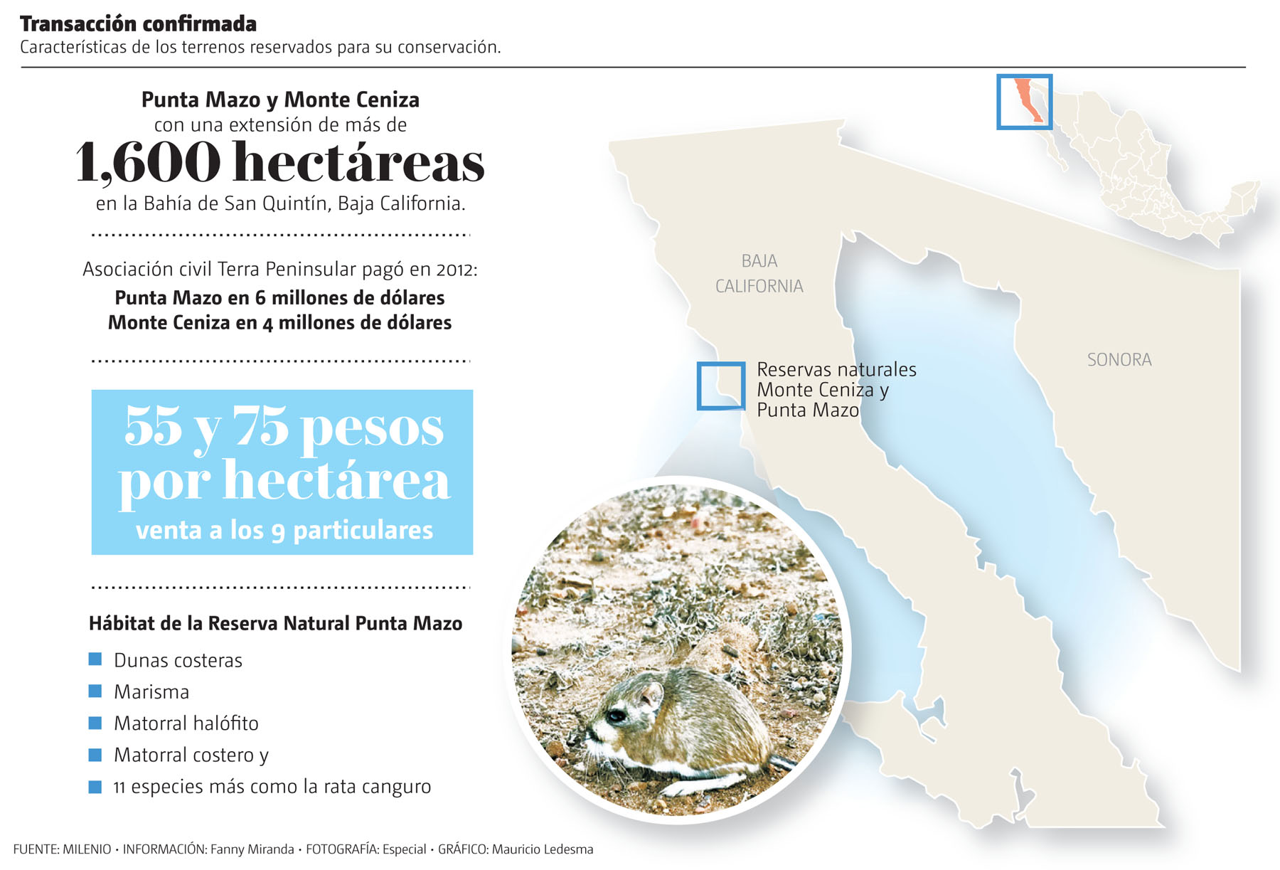 La Comisión Nacional de Áreas Naturales Protegidas (Conanp) confirmó que, de los terrenos de la Bahía de San Quintín, en Ensenada, Baja California, vendidos a nueve particulares por la Secretaría de Desarrollo Agrario, Territorial y Urbano en noviembre de 2015, uno ya contaba con el certificado de “Áreas destinadas voluntariamente a la conservación (ADVC)” y el de otro estaba en trámite.