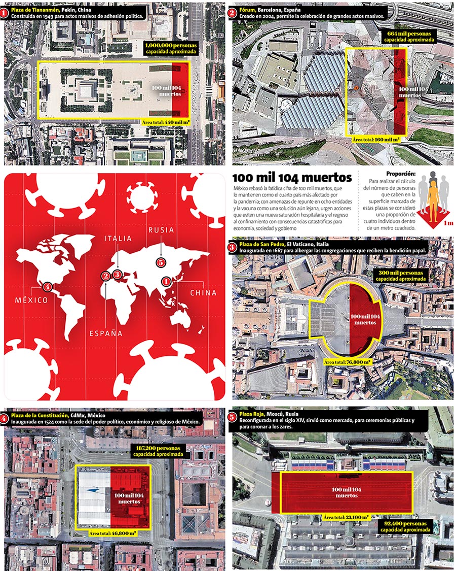 A ocho meses del primer muerto por covid-19, México se convirtió en el cuarto país en el mundo que supera la cifra de los 100 mil muertos, tan solo detrás de Estados Unidos, Brasil e India.