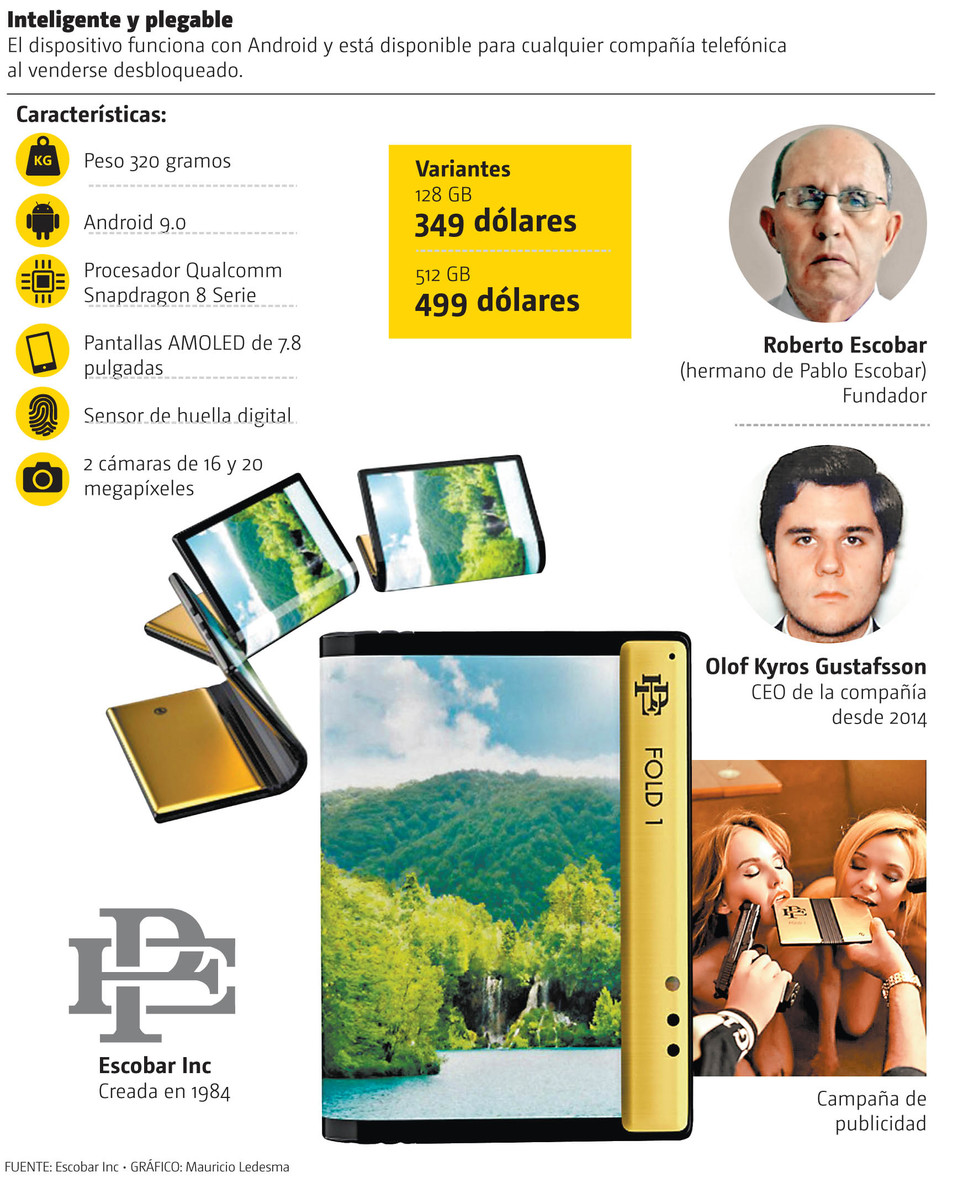 “Si Pablo Escobar estuviera vivo su empresa sería igual o más grande que Apple”, aseguró Olof Gustafsson, CEO de Escobar Inc, en entrevista con MILENIO, luego del lanzamiento de un teléfono con tecnología de pantalla flexible que compite directamente con teléfonos plegables Galaxy Fold, de Samsung; Mate X, de Huawei, y Moto Razr, de Motorola, pero a diferencia de estos —que cuestan en promedio más de mil dólares— el Escobar Fold 1 tiene precio de salida de 350 dólares.