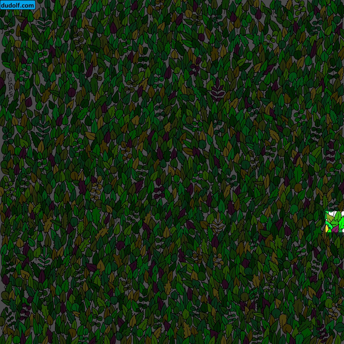 En el desafío de hoy tienes que encontrar una pequeña rana escondida entre una gran cantidad de hojas verdes, amarillas y moradas. Si no tardaste mucho con aquel en el que debías buscar un diminuto corazón entre un grupo de flamencos de distintos colores, no tendrás ningún problema con éste. ¿Crees poder realizarlo en menos de 20 segundos? A continuación te presentamos la imagen completa.