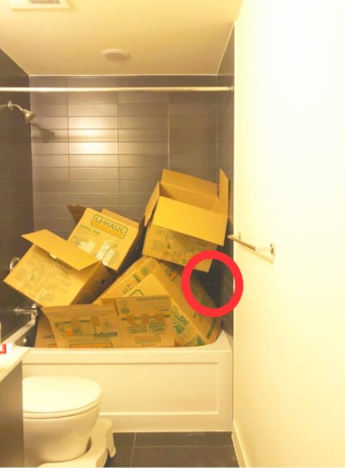 Para este reto visual, tenemos una foto del usuario Do The Michael Scarn en Reddit. Se trata de un baño con una tina llena de cajas de cartón en lo que podría tratarse de una mudanza... o de una compra de pánico en internet. Sin embargo, y aunque parece imposible, hay un tierno y juguetón gatito perdido en este desorden.